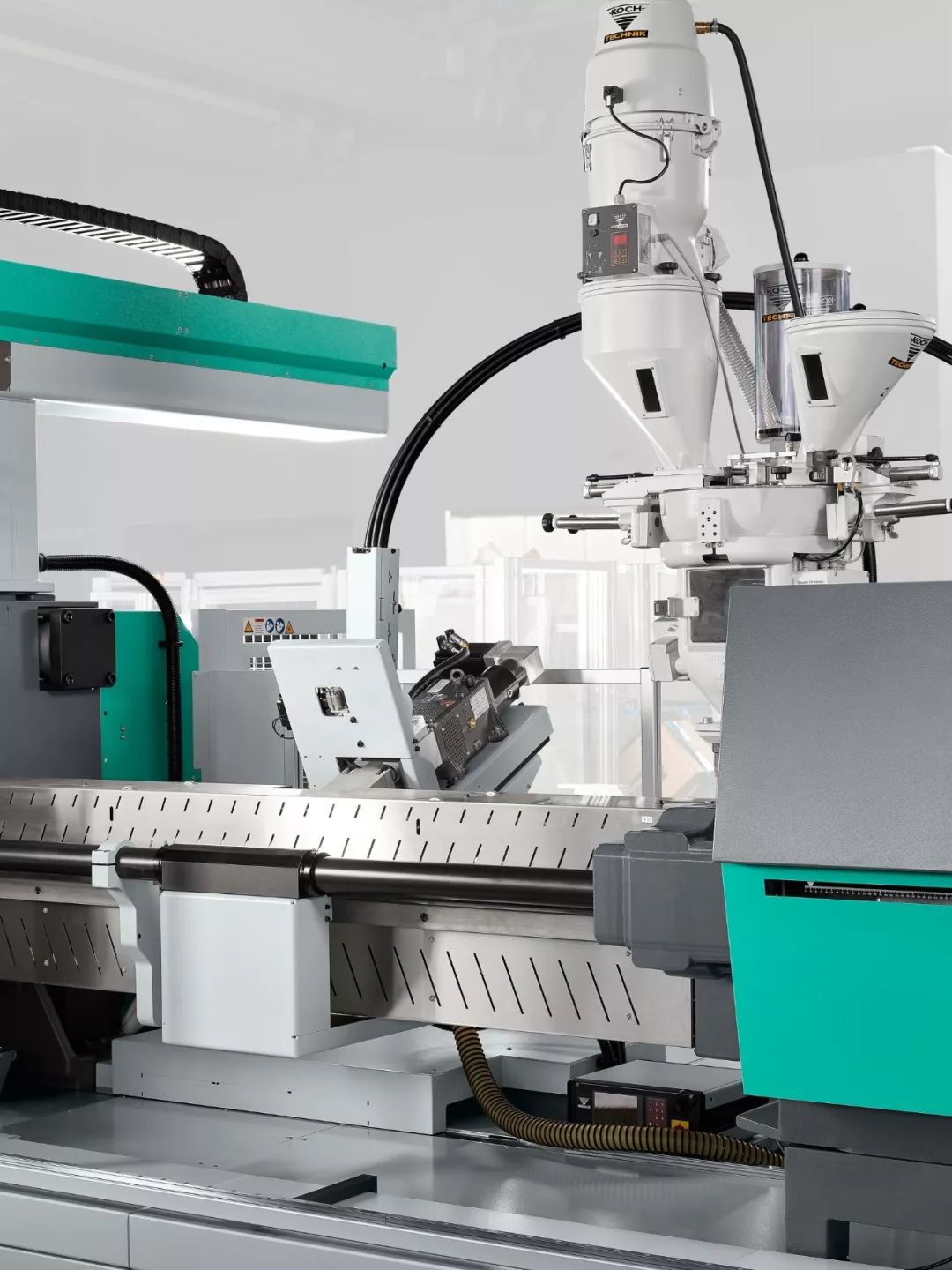 固定在注射單元上的FDC 裝置包括集成了切割裝置的側喂料器、一個適配的氣缸和一種特殊的螺桿結構。
